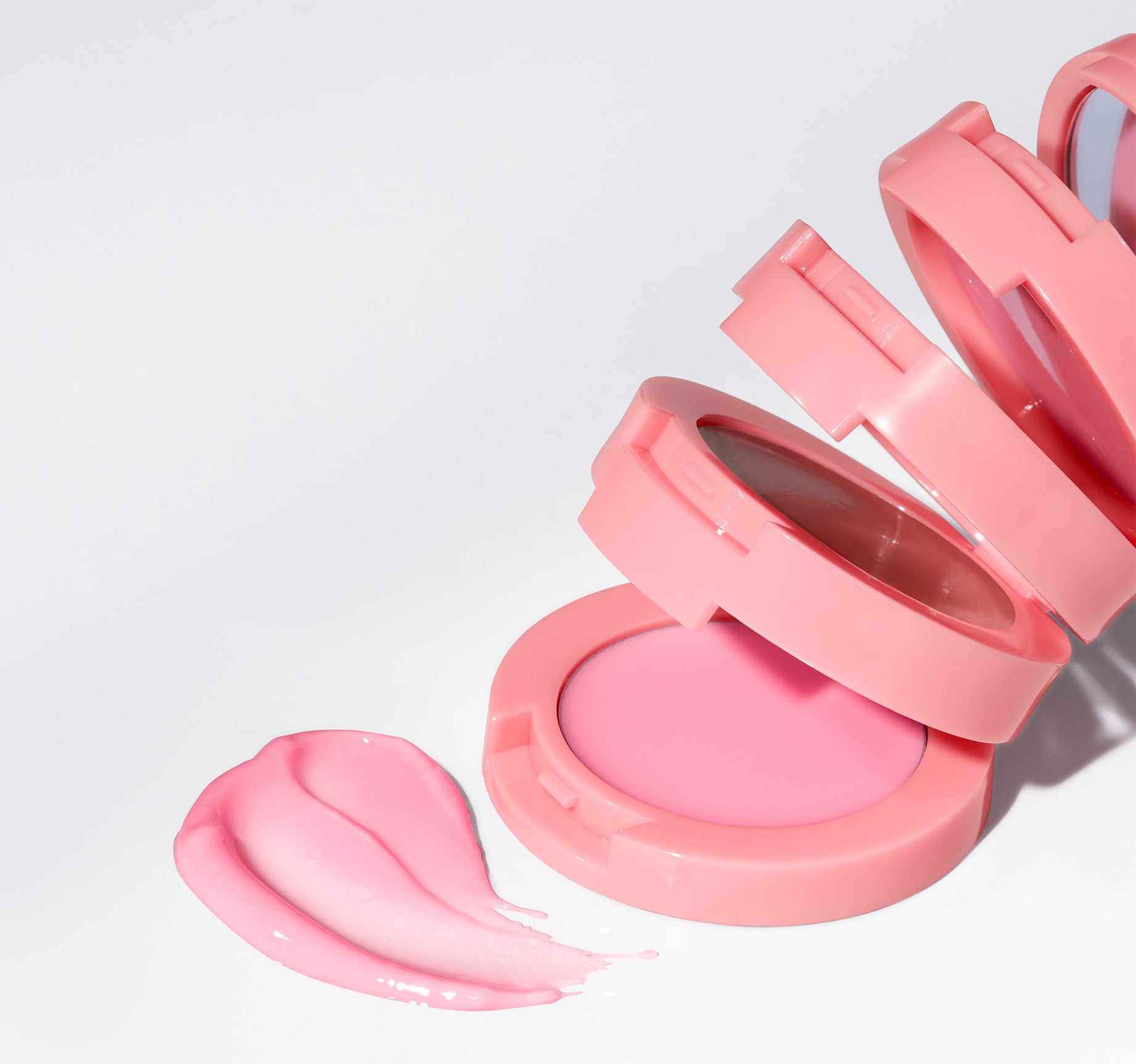 CHEEKS: Tap the creamy blush onto your cheeks for a flush of color.