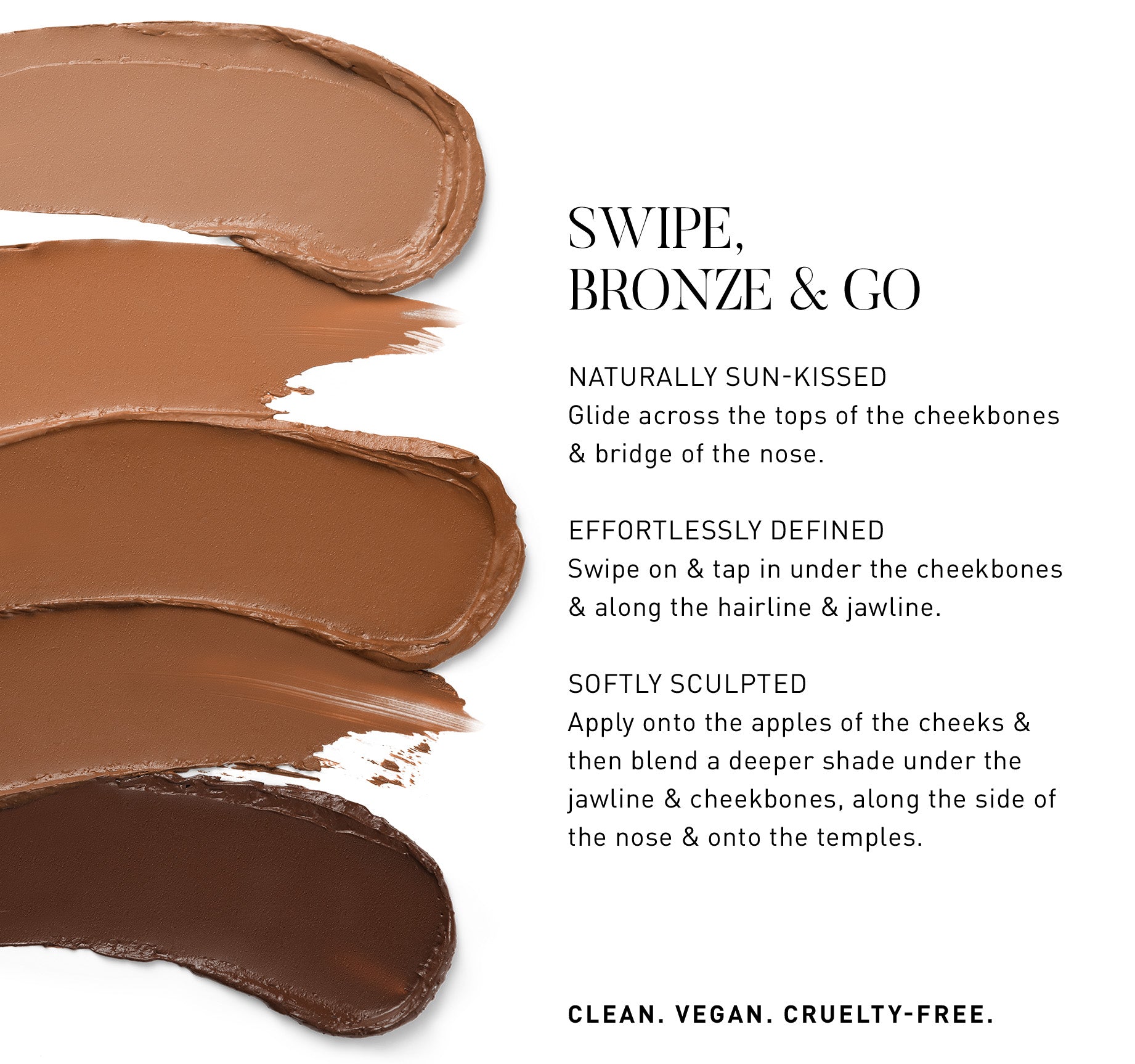 Effortlessly defined: Swipe on and tap in under the cheekbones and along the hairline and jawline to add natural dimension.